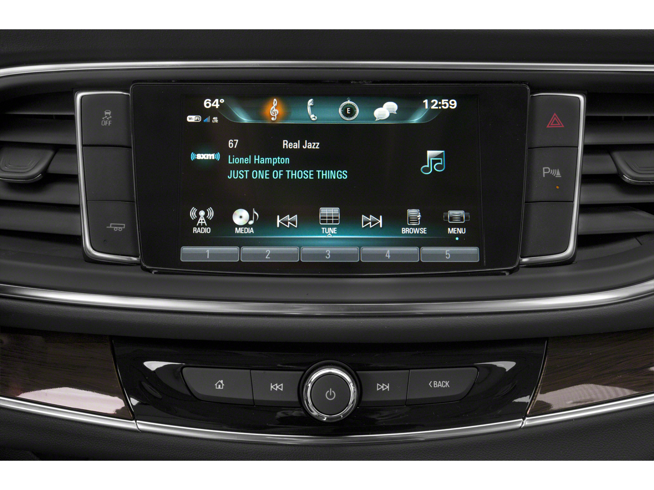 Preferred Equipment Group 1SL, 18 Painted Aluminum Wheels, 3.49 Axle Ratio, 3rd row seats: split-bench, 4-Wheel Disc Brakes, 6 Speakers, 6-Speaker Audio System Feature, 7-Passenger Seating, ABS brakes, Air Conditioning, Alloy wheels, AM/FM radio: SiriusXM, Apple CarPlay/Android Auto, Auto High-beam Headlights, Auto-dimming door mirrors, Auto-dimming Rear-View mirror, Automatic temperature control, Brake assist, Bumpers: body-color, Compass, Delay-off headlights, Driver door bin, Driver vanity mirror, Dual front impact airbags, Dual front side impact airbags, Electronic Stability Control, Emergency communication system: OnStar and Buick connected services capable, Four wheel independent suspension, Front anti-roll bar, Front Bucket Seats, Front Center Armrest, Front dual zone A/C, Front Power Sliding Moonroof, Front reading lights, Fully automatic headlights, Garage door transmitter, Heated door mirrors, Heated Driver & Front Passenger Seats, Heated front seats, Illuminated entry, Leather steering wheel, Low tire pressure warning, Occupant sensing airbag, Outside temperature display, Overhead airbag, Overhead console, Panic alarm, Passenger door bin, Passenger vanity mirror, Perforated Leather-Appointed Seat Trim, Power door mirrors, Power Driver Lumbar Control Seat Adjuster, Power driver seat, Power Liftgate, Power Passenger Lumbar Control Seat Adjuster, Power passenger seat, Power steering, Power windows, Premium audio system: Buick Infotainment System, Radio data system, Radio: Buick Infotainment System AM/FM Stereo, Rear air conditioning, Rear anti-roll bar, Rear Parking Sensors, Rear reading lights, Rear window defroster, Rear window wiper, Remote keyless entry, Roof rack: rails only, Security system, SiriusXM Radio, Speed control, Speed-sensing steering, Spoiler, Steering wheel mounted audio controls, Tachometer, Telescoping steering wheel, Tilt steering wheel, Traction control, Trip computer, Turn signal indicator mirrors, Variably intermittent wipers, and Voltmeter.