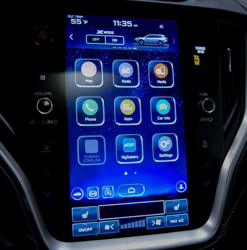 - Radio: Subaru STARLINK 11.6" Multimedia Plus Sys -inc: AM/FM stereo, HD Radio, voice activated controls, Bluetooth® audio streaming and hands-free phone connectivity w/SMS text messaging (applicable w/compatible cellphone), Near Field Communication (NFC), iPod control capability, SiriusXM All Access radio (subscription required), SiriusXM Travel Link (subscription required) and smartphone integration: Android Auto, CarPlay and STARLINK cloud applications, 3.5mm auxiliary input jack and dual USB input ports