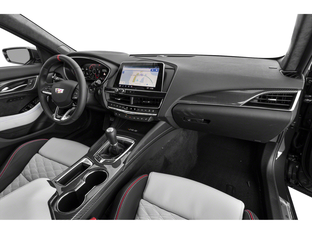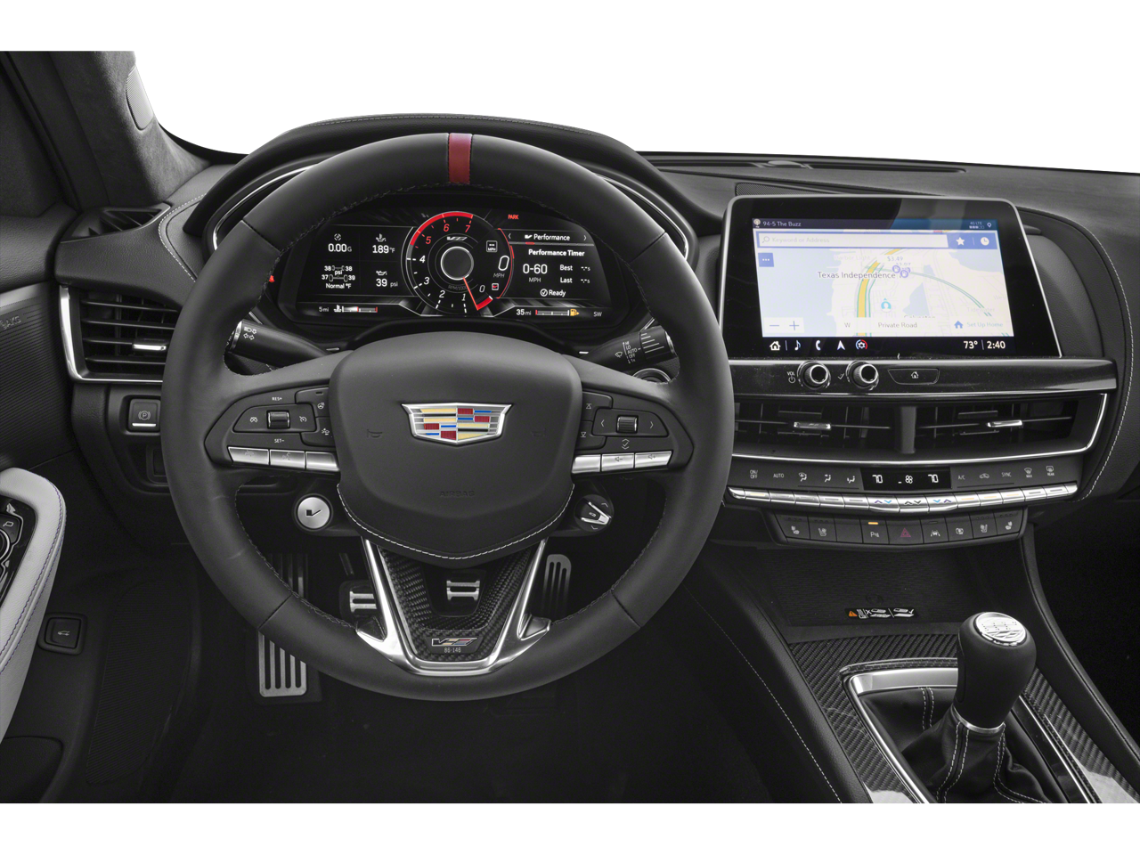 Battery Protection Package (LPO), Driver Assist Package (Adaptive Cruise Control, Enhanced Automatic Emergency Braking, and Reverse Automatic Braking), Interior Protection Package (LPO) (All-Weather Cargo Mat (LPO) and All-Weather Floor Mats), Parking Package (Air Ionizer, Hands-Free Decklid Release, Rear Camera Mirror, and Rear Pedestrian Alert), Preferred Equipment Group 1SV (Automatic Emergency Braking, Brembo 4-Wheel Antilock Performance Disc Brakes, Electronic Cruise Control w/Set & Resume Speed, Front & Rear Park Assist, and Inside Rear-View Auto-Dimming Mirror), Radio: Cadillac User Experience w/Embedded Nav (AKG Premium 16-Speaker System, HD Radio, and SiriusXM w/360L), Sueded Microfiber-Wrapped Interior Trim Package, 16 Speakers, 4-Wheel Disc Brakes, ABS brakes, Adaptive Remote Start, Adaptive suspension, Air Conditioning, Alloy wheels, AM/FM radio: SiriusXM with 360L, Apple CarPlay/Android Auto, Auto High-beam Headlights, Auto-dimming door mirrors, Auto-dimming Rear-View mirror, Automatic Parking Assist w/Braking, Automatic temperature control, Automatic Vehicle Hold Brake, Black Wheel Locks (LPO), Black Wheel Lug Nuts (LPO), Brake assist, Buckle to Drive, Bumpers: body-color, Compass, Delay-off headlights, Driver 4-Way Power Lumbar Seat Adjuster, Driver door bin, Driver Power Lumbar Massage Seat, Driver vanity mirror, Dual front impact airbags, Dual front side impact airbags, Electronic Precision Shift, Electronic Stability Control, Emergency communication system: OnStar and Cadillac connected services capable, Exterior Parking Camera Rear, Four wheel independent suspension, Front 2-Way Adjustable Head Restraints, Front anti-roll bar, Front Bucket Seats, Front Center Armrest, Front dual zone A/C, Front Passenger 4-Way Power Lumbar Seat Adjuster, Front Passenger Power Lumbar Massage Seat, Front reading lights, Front Splitter, Fully automatic headlights, Garage door transmitter, Heads-Up Display, Heated door mirrors, Heated Driver & Front Passenger Seats, Heated front seats, Heated steering wheel, High Performance Front Bucket Seats, Illuminated entry, Knee airbag, Leather Seating Surfaces w/Mini-Perforated Inserts, Leather steering wheel, Low tire pressure warning, Memory seat, Navigation System, Occupant sensing airbag, Outside temperature display, Overhead airbag, Overhead console, Panic alarm, Passenger door bin, Passenger vanity mirror, Performance Data & Video Recorder, Performance Front Bucket Seats, Power door mirrors, Power driver seat, Power passenger seat, Power steering, Power windows, Radio data system, Rain sensing wipers, Rear anti-roll bar, Rear reading lights, Rear seat center armrest, Rear window defroster, Red Front & Rear Calipers, Remote keyless entry, Security system, Speed control, Speed-sensing steering, Split folding rear seat, Spoiler, Steering Wheel Mounted Alloy Paddle Shift Controls, Steering wheel mounted audio controls, Sueded Microfiber Shifter, Sueded Microfiber Steering Wheel, Tachometer, Telescoping steering wheel, Tilt steering wheel, Traction control, Trip computer, Turn signal indicator mirrors, Variably intermittent wipers, Ventilated Driver & Front Passenger