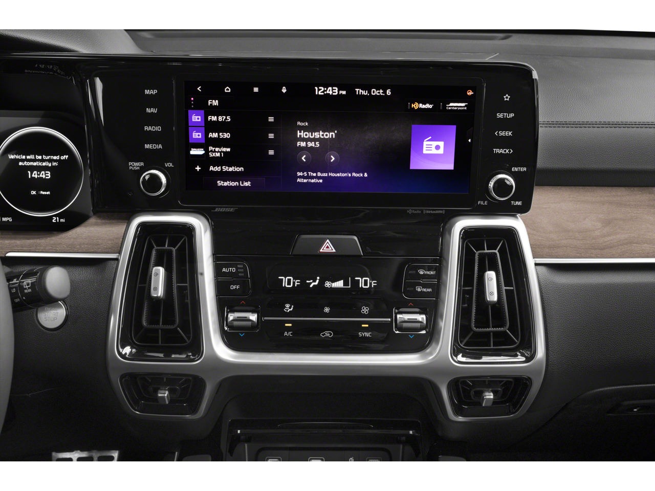 Rust Color Package, 12 Speakers, 3.316 Axle Ratio, 3rd row seats: split-bench, 4-Wheel Disc Brakes, ABS brakes, Air Conditioning, Alloy wheels, AM/FM radio: SiriusXM, Apple CarPlay & Android Auto, Auto High-beam Headlights, Auto-dimming Rear-View mirror, Automatic temperature control, Brake assist, Bumpers: body-color, Cargo Net, Carpeted Cargo Mat w/Seatback Protection, Carpeted Floor Mats, Delay-off headlights, Driver door bin, Driver vanity mirror, Dual front impact airbags, Dual front side impact airbags, Electronic Stability Control, Emergency communication system: UVO Link, Four wheel independent suspension, Front anti-roll bar, Front Bucket Seats, Front Center Armrest, Front dual zone A/C, Front fog lights, Front reading lights, Fully automatic headlights, Heated & Ventilated Front Bucket Seats, Heated door mirrors, Heated front seats, Heated rear seats, Heated steering wheel, Illuminated entry, Knee airbag, Leather steering wheel, Low tire pressure warning, Memory seat, Navigation System, Occupant sensing airbag, Outside temperature display, Overhead airbag, Overhead console, Panic alarm, Passenger door bin, Passenger vanity mirror, Perforated Genuine Leather Seat Trim, Power door mirrors, Power driver seat, Power Liftgate, Power moonroof, Power passenger seat, Power steering, Power windows, Radio data system, Radio: AM/FM Bose Premium Audio System, Rear air conditioning, Rear anti-roll bar, Rear reading lights, Rear window defroster, Rear window wiper, Remote keyless entry, Roof rack: rails only, Security system, Smart Key w/ Push Button and Remote Start, Speed control, Speed-sensing steering, Split folding rear seat, Spoiler, Steering wheel mounted audio controls, Tachometer, Telescoping steering wheel, Tilt steering wheel, Traction control, Trip computer, Turn signal indicator mirrors, Variably intermittent wipers, Ventilated front seats, and Wheels: 8.5J x 20 Matte Gray Alloy.