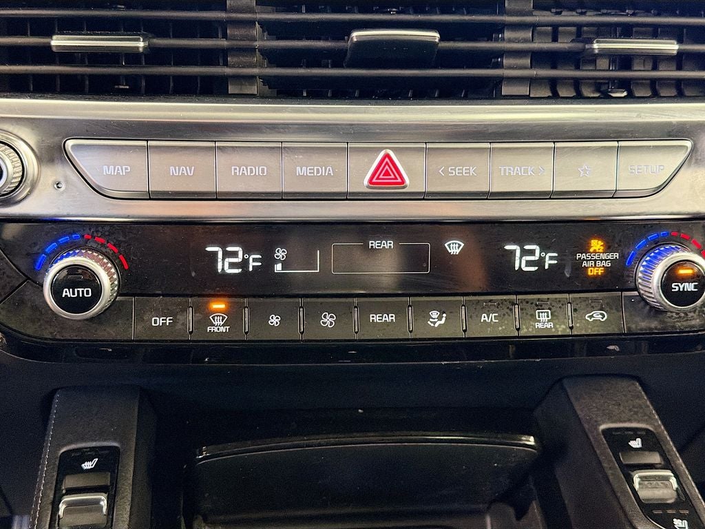 Step inside the Telluride EX and you'll be greeted by a spacious and well-appointed interior. The leather-trimmed seats are both heated and ventilated, ensuring your comfort in any weather. The panoramic sunroof floods the cabin with natural light, while the premium audio system delivers an immersive listening experience. The advanced navigation system and touch screen controls make it easy to stay connected and in control.