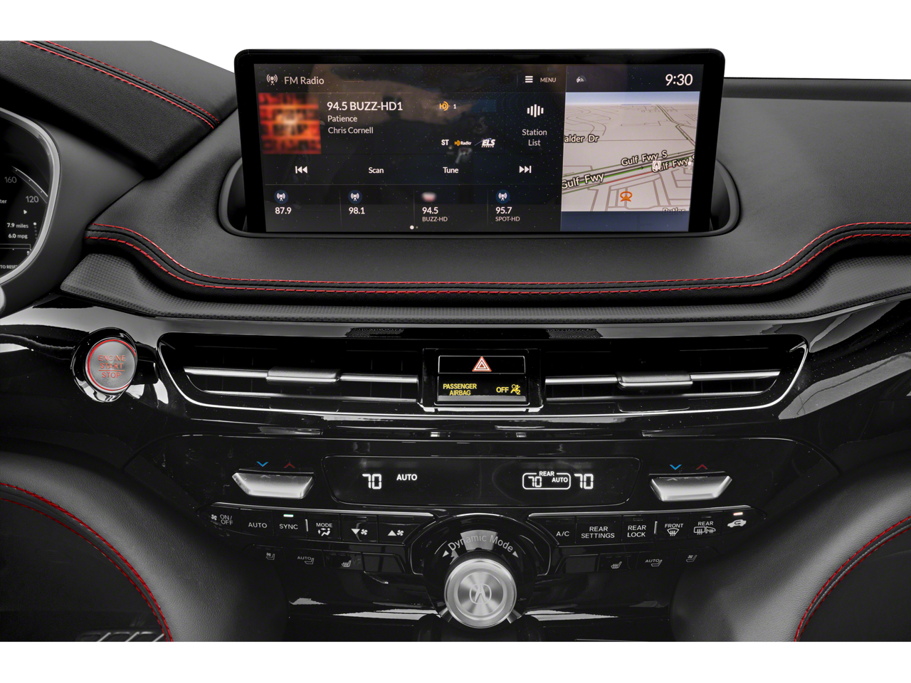 16 Speakers, 3rd row seats: split-bench, 4-Wheel Disc Brakes, 4.17 Axle Ratio, A/V remote: CabinControl, ABS brakes, Air Conditioning, Alloy wheels, AM/FM radio: SiriusXM, Anti-whiplash front head restraints, Apple CarPlay/Android Auto, Audio memory, Auto High-beam Headlights, Auto tilt-away steering wheel, Auto-dimming Rear-View mirror, Automatic temperature control, Brake assist, Bumpers: body-color, Compass, Delay-off headlights, Driver door bin, Driver vanity mirror, Dual front impact airbags, Dual front side impact airbags, Electronic Stability Control, Emergency communication system: AcuraLink, Exterior Parking Camera Rear, Four wheel independent suspension, Front anti-roll bar, Front Bucket Seats, Front Center Armrest, Front dual zone A/C, Front fog lights, Front reading lights, Fully automatic headlights, Garage door transmitter: HomeLink, Heated & Ventilated Front Sport Seats, Heated door mirrors, Heated front seats, HVAC memory, Illuminated entry, Knee airbag, Lane departure: Lane Keeping Assist System (LKAS) active, Leather steering wheel, Low tire pressure warning, Memory seat, Navigation system: Acura Navigation System with 3D View, Occupant sensing airbag, Outside temperature display, Overhead airbag, Overhead console, Panic alarm, Passenger door bin, Passenger vanity mirror, Perforated Premium Milano Leather Trimmed Seats, Power door mirrors, Power driver seat, Power Liftgate, Power moonroof, Power passenger seat, Power steering, Power windows, Premium audio system: Acura/ELS Studio 3D, Radio data system, Radio: ELS Studio 3D Premium Audio System, Rain sensing wipers, Rear air conditioning, Rear anti-roll bar, Rear reading lights, Rear seat center armrest, Rear window defroster, Rear window wiper, Remote keyless entry, Security system, Speed control, Speed-sensing steering, Speed-Sensitive Wipers, Split folding rear seat, Spoiler, Sport steering wheel, Steering wheel memory, Steering wheel mounted audio controls, Tachometer, Telescoping steering wheel, Tilt steering wheel, Traction control, Trip computer, Turn signal indicator mirrors, Variably intermittent wipers, Ventilated front seats, and Wheels: 20 x 9 Aluminum Alloy.