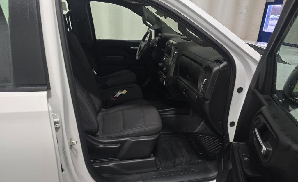 This Summit White Silverado 1500 WT also boasts a sleek and modern exterior design, with a black front and rear bumper that give it a bold, rugged appearance. The 17-inch ultra-silver painted steel wheels and deep-tinted glass add to the truck's striking good looks.