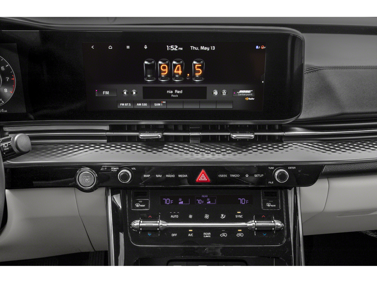 - Radio: AM/FM/HD Audio System -inc: 12-speaker Bose premium audio (exterior amp, and subwoofer), 12.3" display, navigation system, Android Auto, Apple CarPlay, SiriusXM, Bluetooth®, modem,1 media port and WiFi hotspot